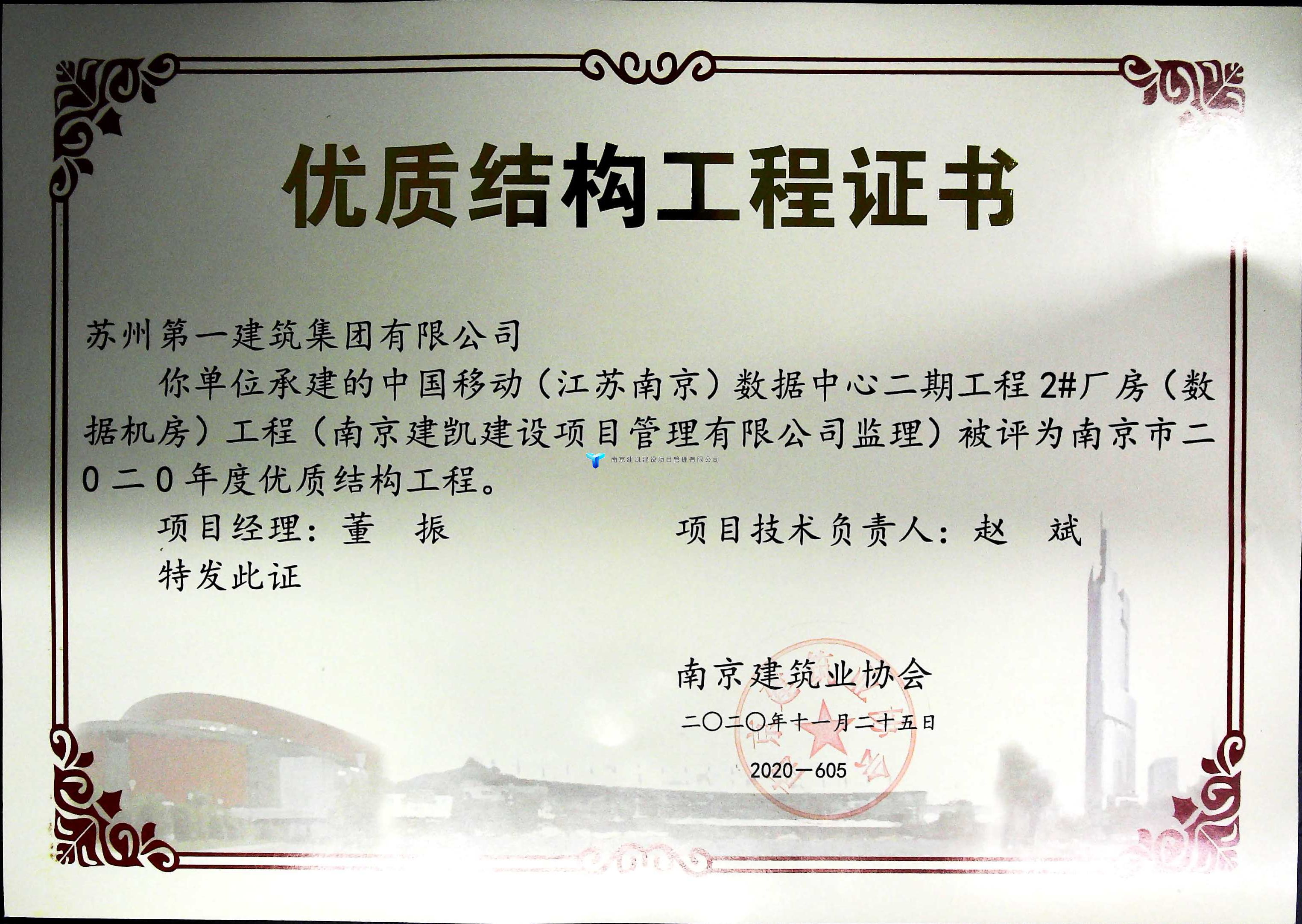 2020年荣获优质结构工程的项目——中国移动(江苏南京)数据中心二期工程2#厂房