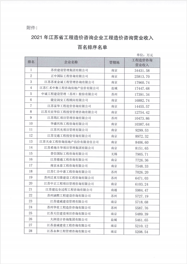 热烈祝贺我司造价机构进入“2021年江苏省工程造价咨询企业工程造价咨询营业收入”百强名单