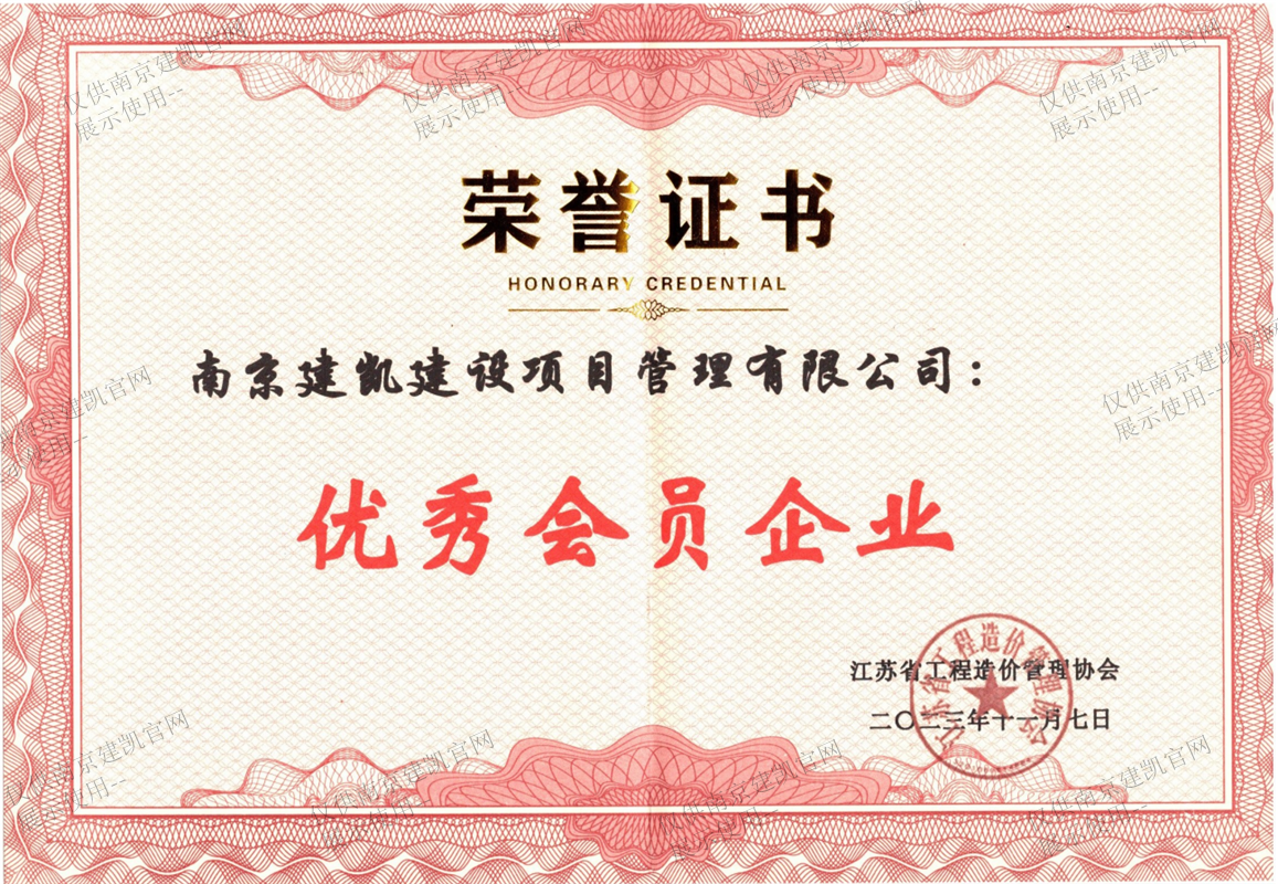 热烈祝贺我司荣获江苏省工程造价管理协会“优秀会员企业”