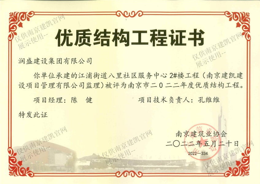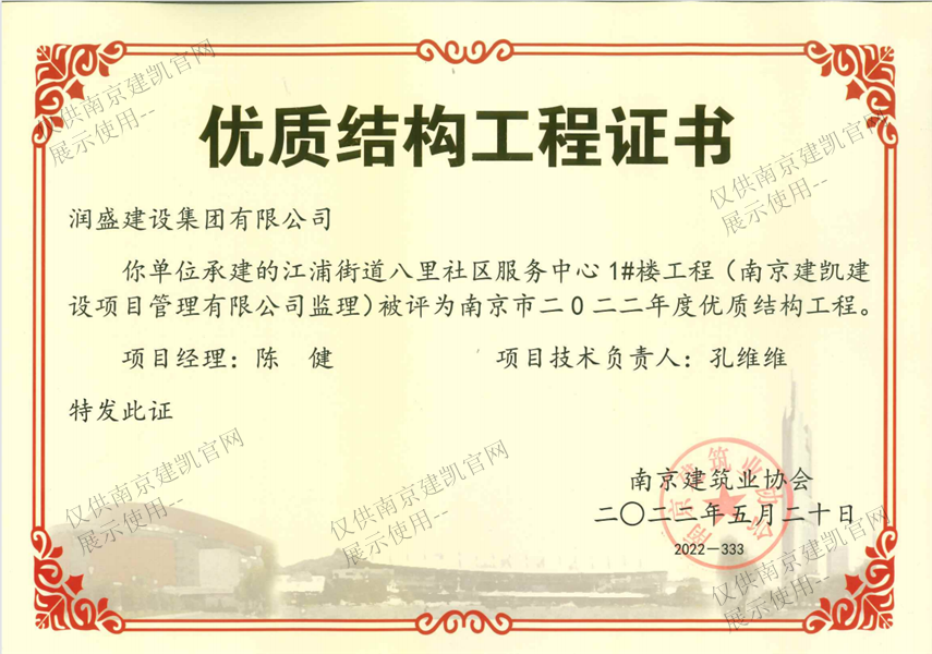 南京市二0二二年度优质结构工程(江浦街道八里社区服务中心2#楼工程)