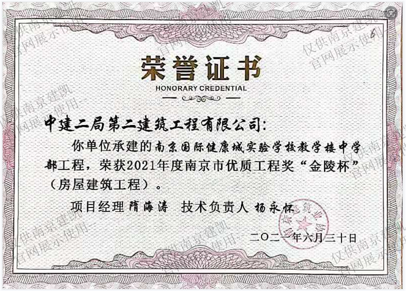 2021年度南京市优质工程奖“金陵杯”(房屋建筑工程)