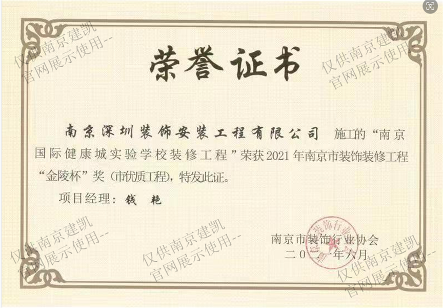 2021年南京市装饰装修工程“金陵杯”奖(市优质工程)