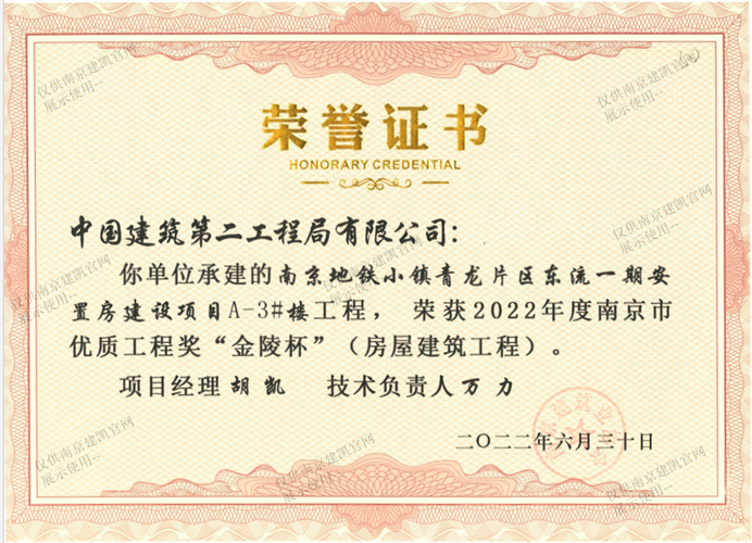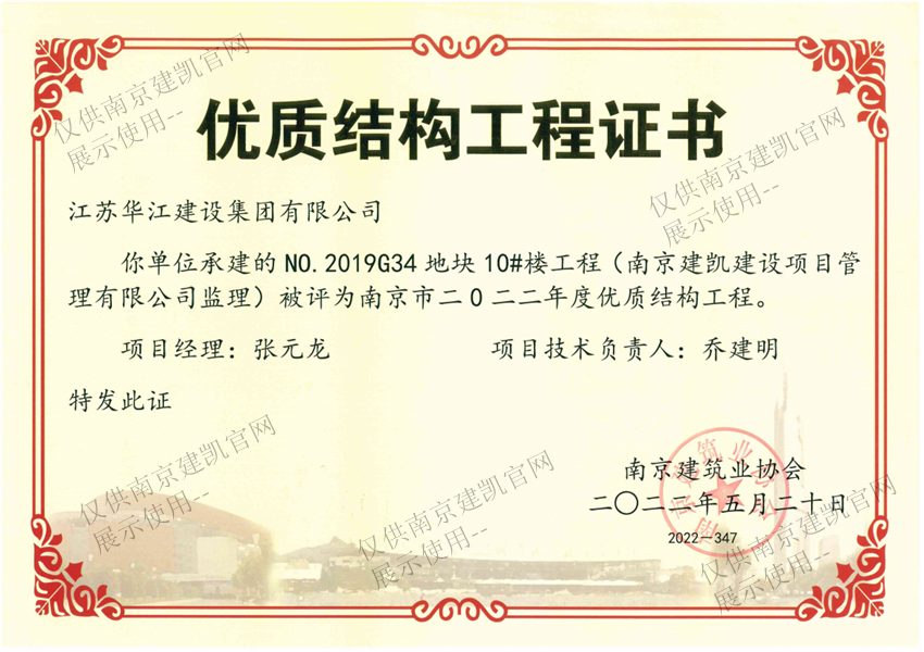 南京市二0二二年度优质结构工程(NO.2019G34地块10#楼工程)