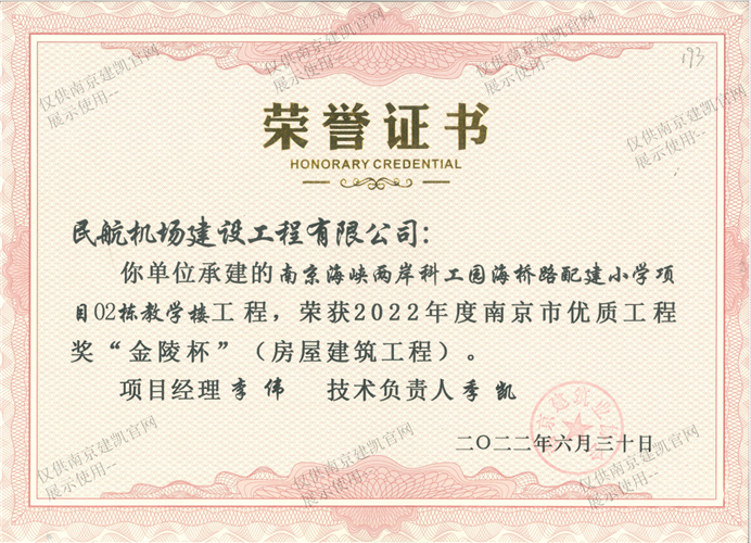 2022年度南京市优质工程奖“金陵杯”(房屋建筑工程)